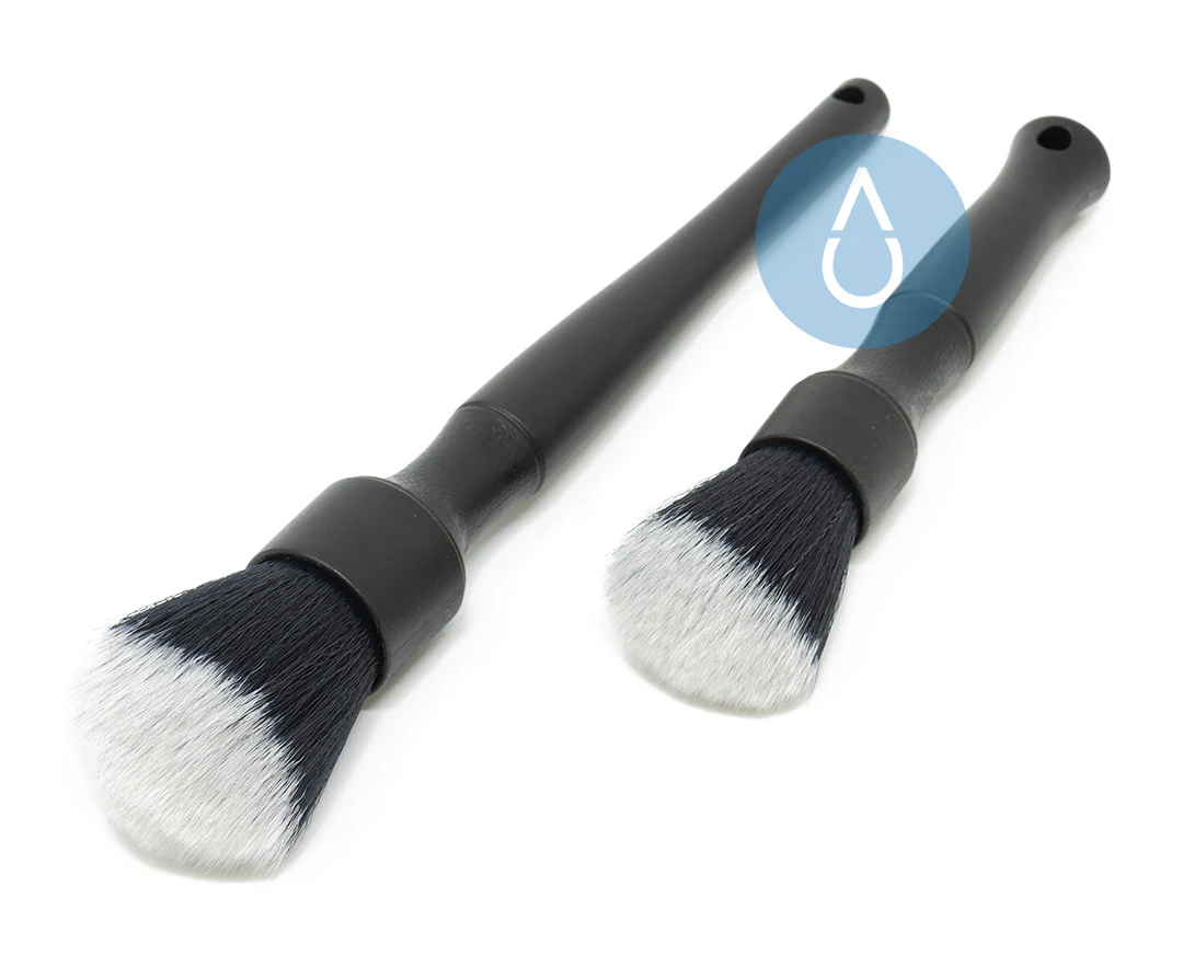 The Detail Factory brushes are specifically designed for light duty cleaning on sensitive automotive surfaces. They are ideal for instrument and infotainment panel dusting and cleaning as well as detailing around badges and emblems where boar’s hair may scratch the surface. They will also work well on any surface that does not require aggressive scrubbing action.